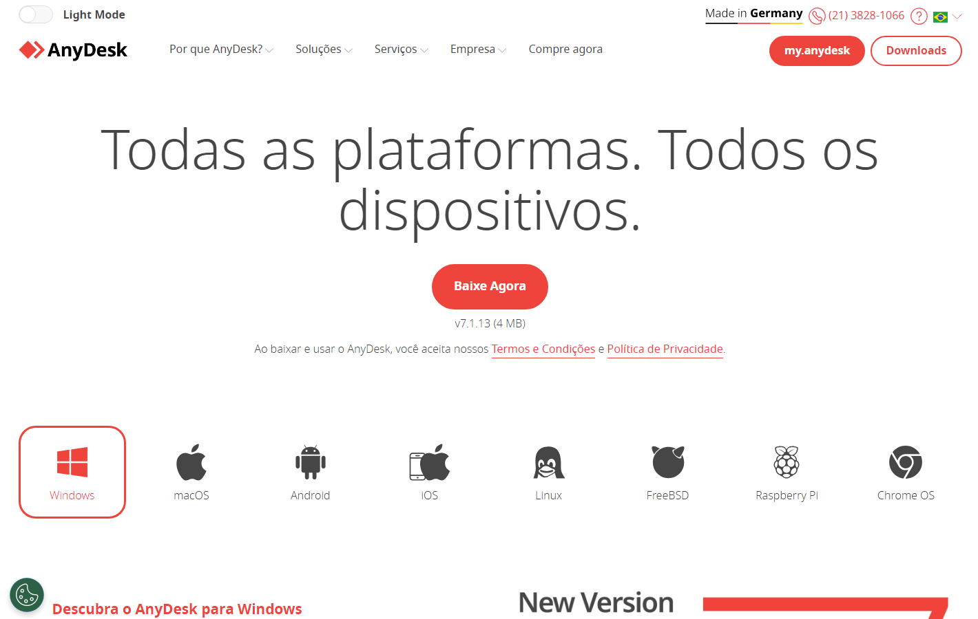 1- clique na figura abaixo e faça o download ou acesse www.anydesk.com e clique em Baixe Agora: |